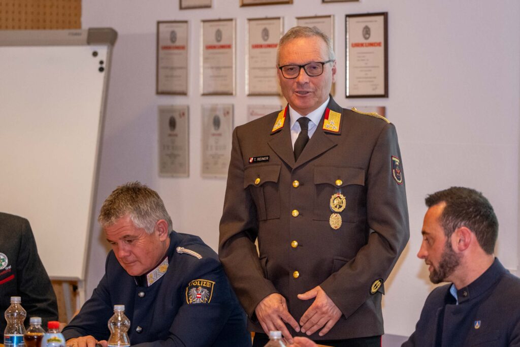 Bei der Ansprache der Ehrengäste Bürgermeister Thomas Suitner, Bezirksfeuerwehrkommandant OBR Thomas Reiner, Polizeipostenkommandant Jakob Annewanter und Bergrettungsortsstellenleiter Heinz Gatscher wurde auf den hohen Ausbildungsstandart der Feuerwehr eingegangen, die hohen Einsatzzahlen angesprochen und die hervorragende Zusammenarbeit zwischen den Blaulichtorganisationen gelobt.
