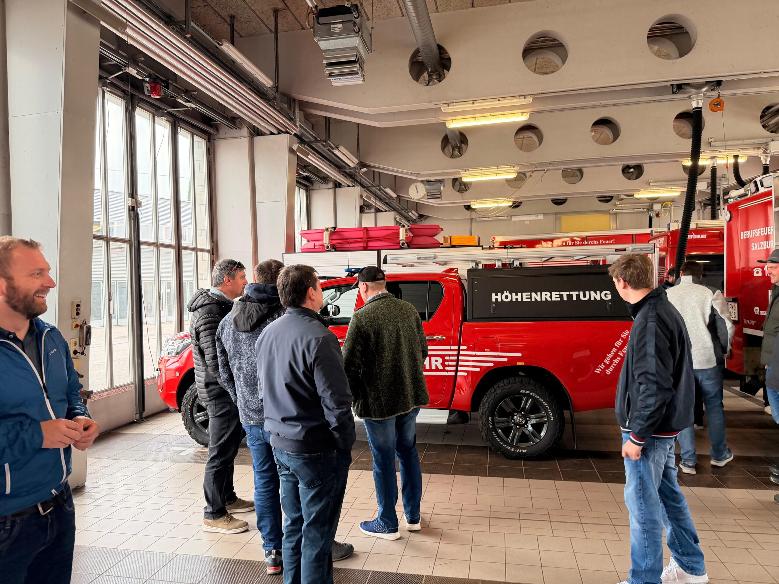 Der erste Halt führte uns zur Berufsfeuerwehr Salzburg, wo wir einen spannenden Einblick in den Alltag der hauptberuflichen Feuerwehrkräfte erhielten. Besonders interessant waren die Ausführungen über die umfangreiche Ausrüstung, die unterschiedlichen Einsatzbereiche sowie die Abläufe im Ernstfall.