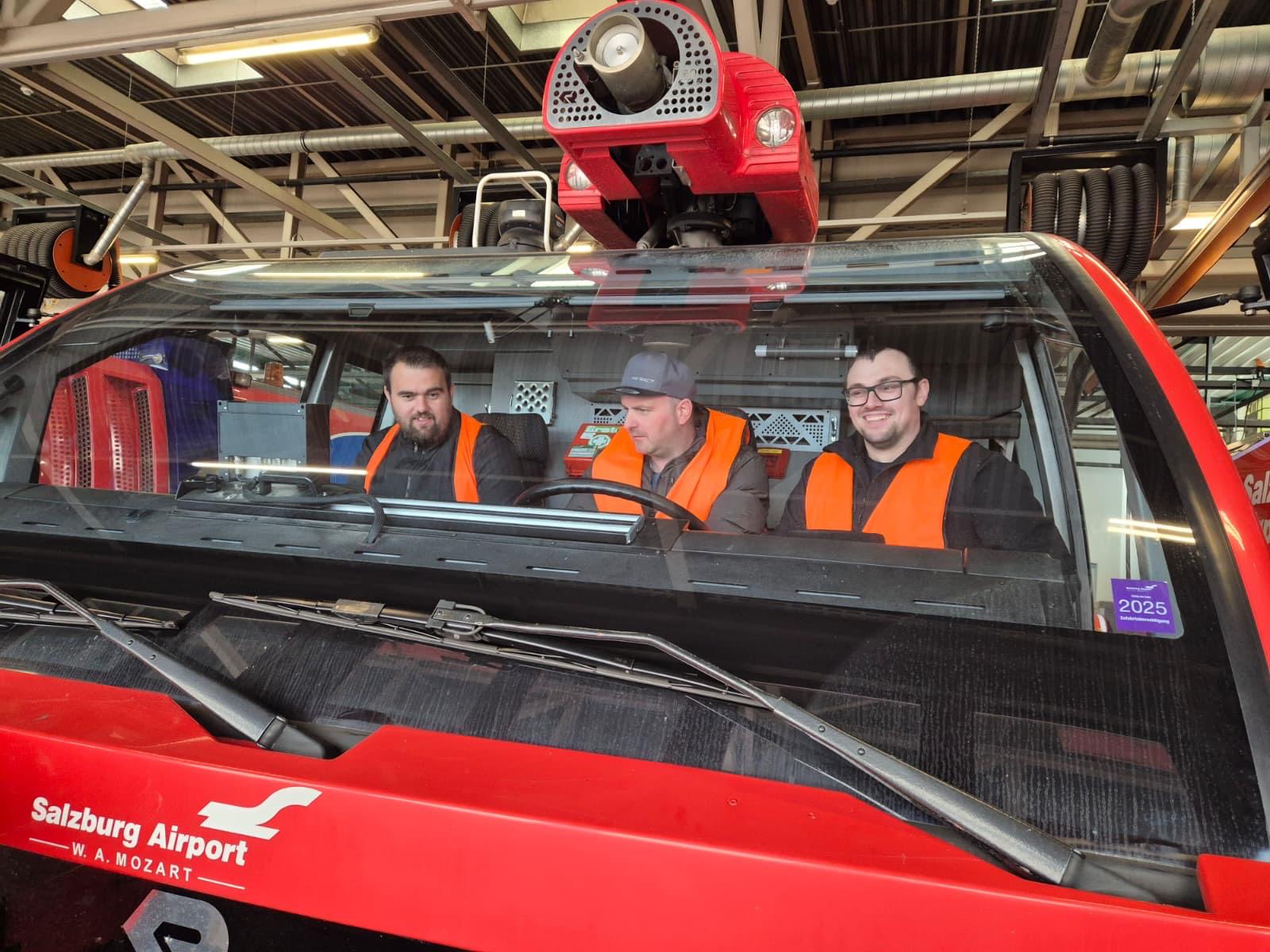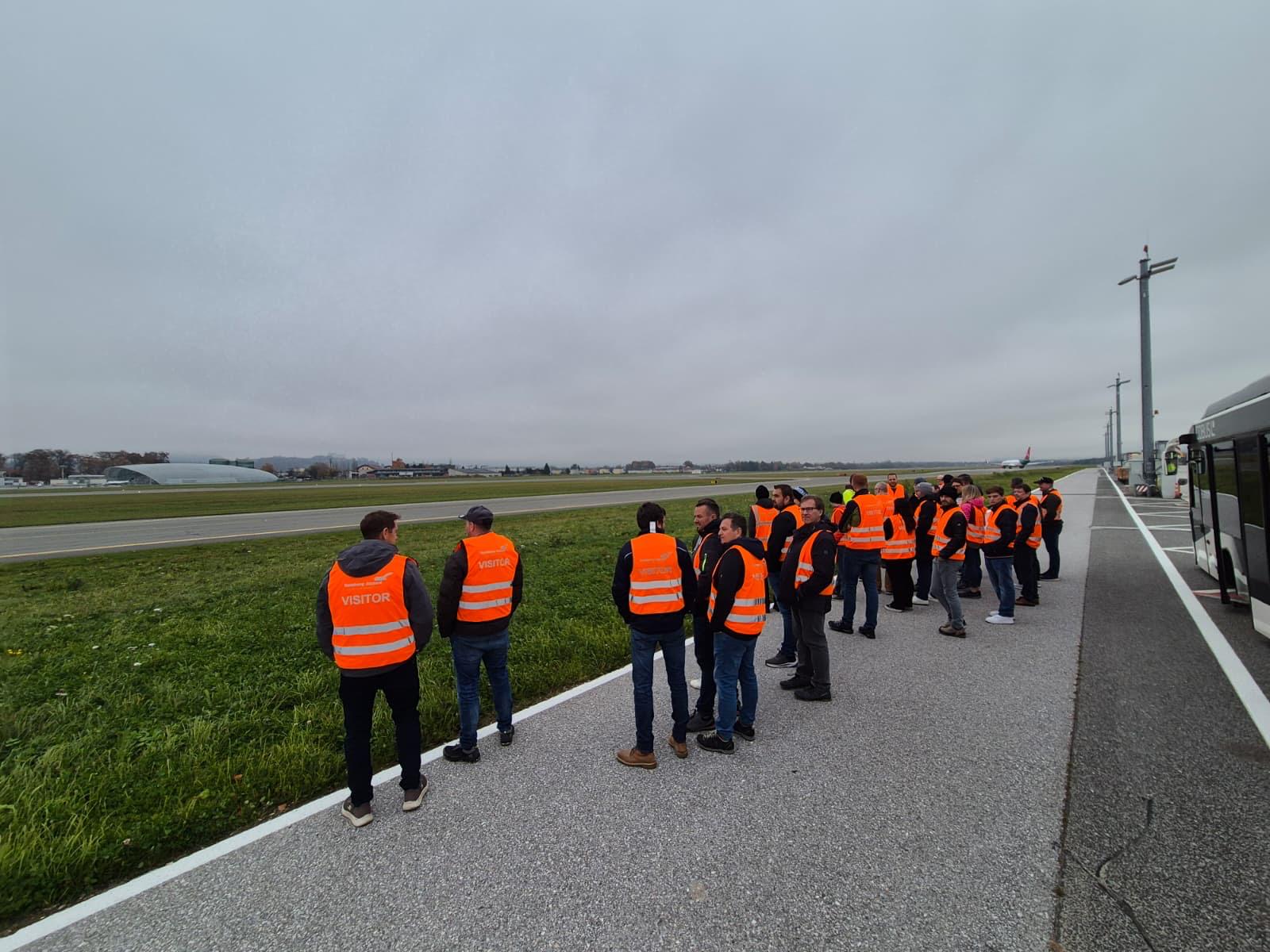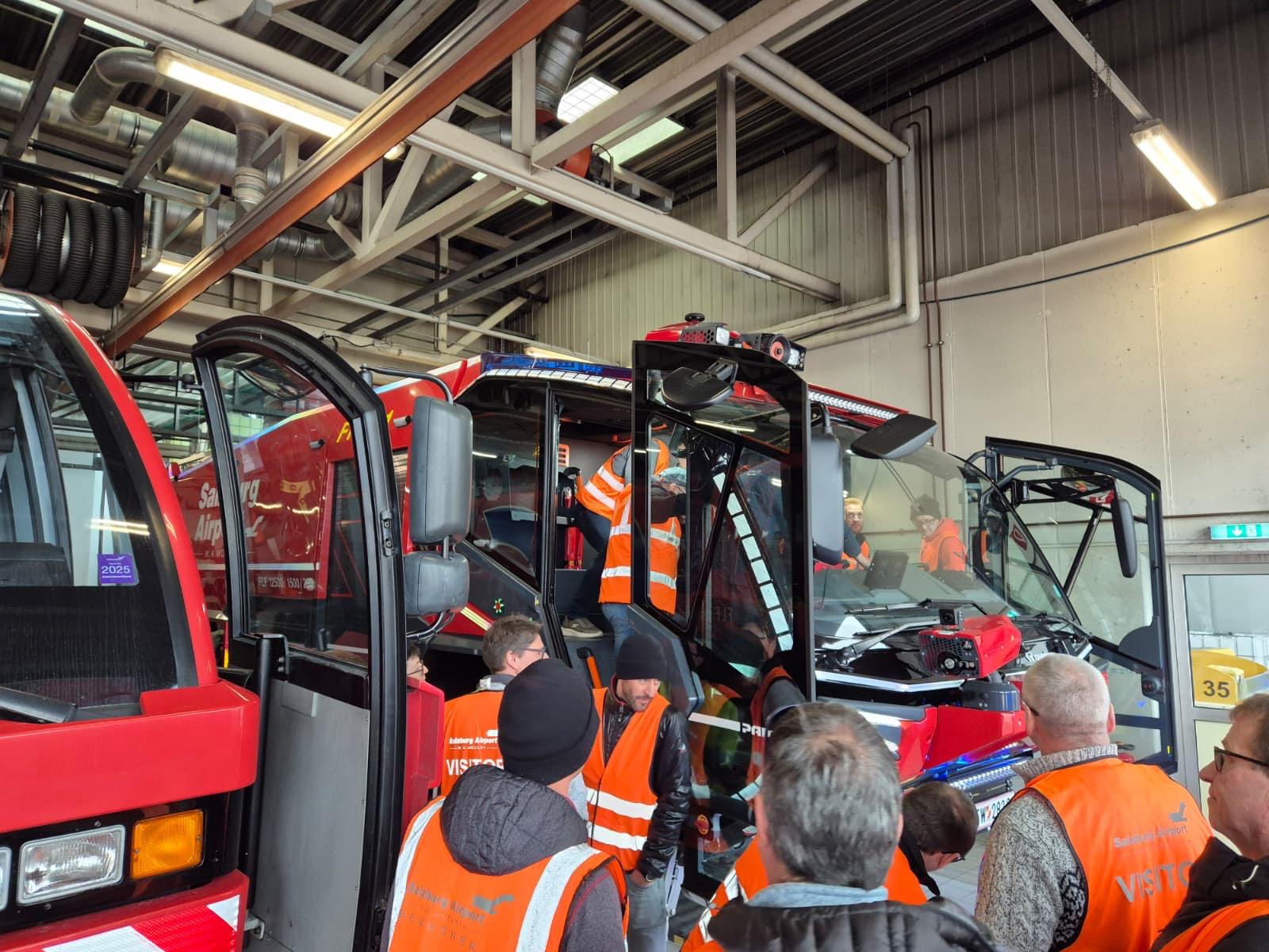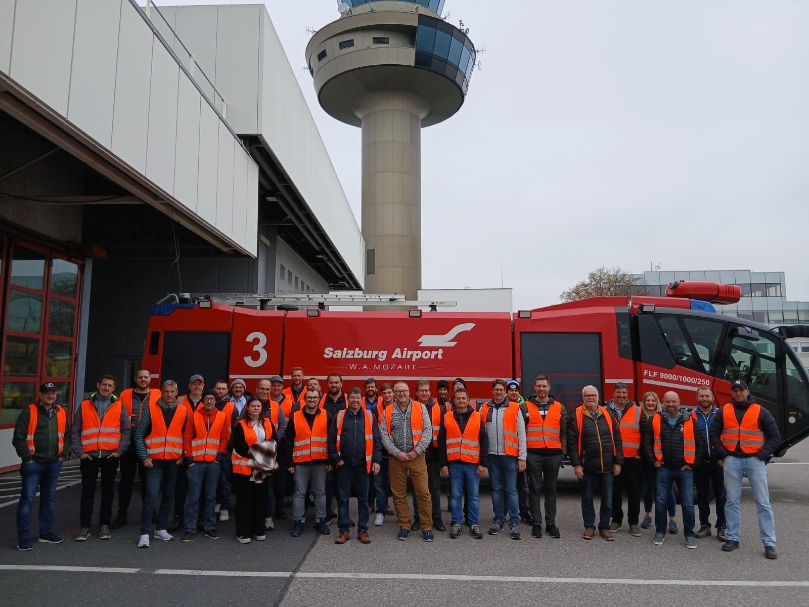 Im Anschluss ging es weiter zum Flughafen Salzburg, wo uns die Flughafenfeuerwehr einen eindrucksvollen Überblick über ihre Tätigkeiten gab. Während der Besichtigung der Einsatzfahrzeuge und Gerätschaften wurde auch der Ablauf der Einsatzbereitschaft im Detail erklärt. Die Dimensionen und technische Ausstattung dieser Spezialfeuerwehr beeindruckten die gesamte Gruppe.