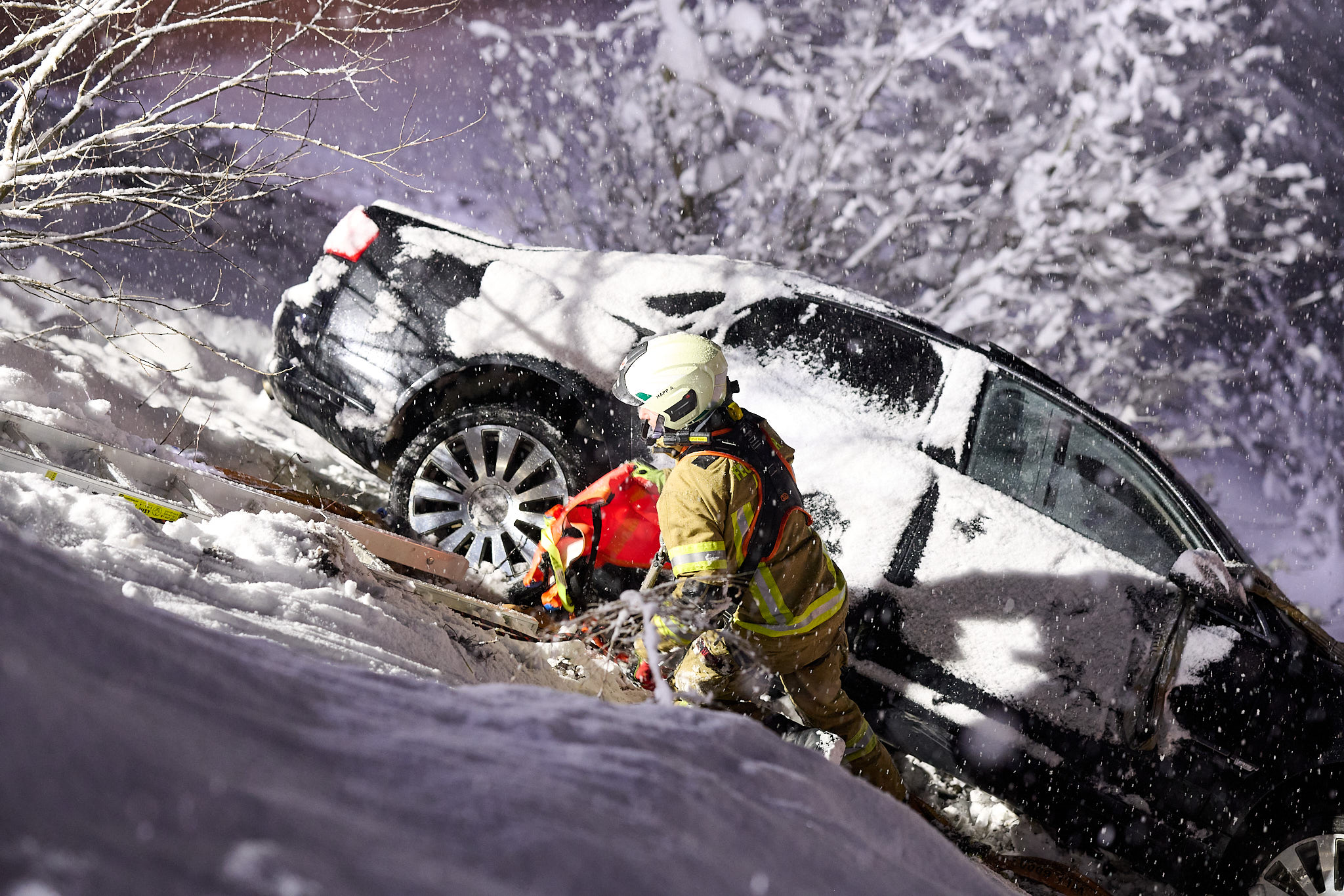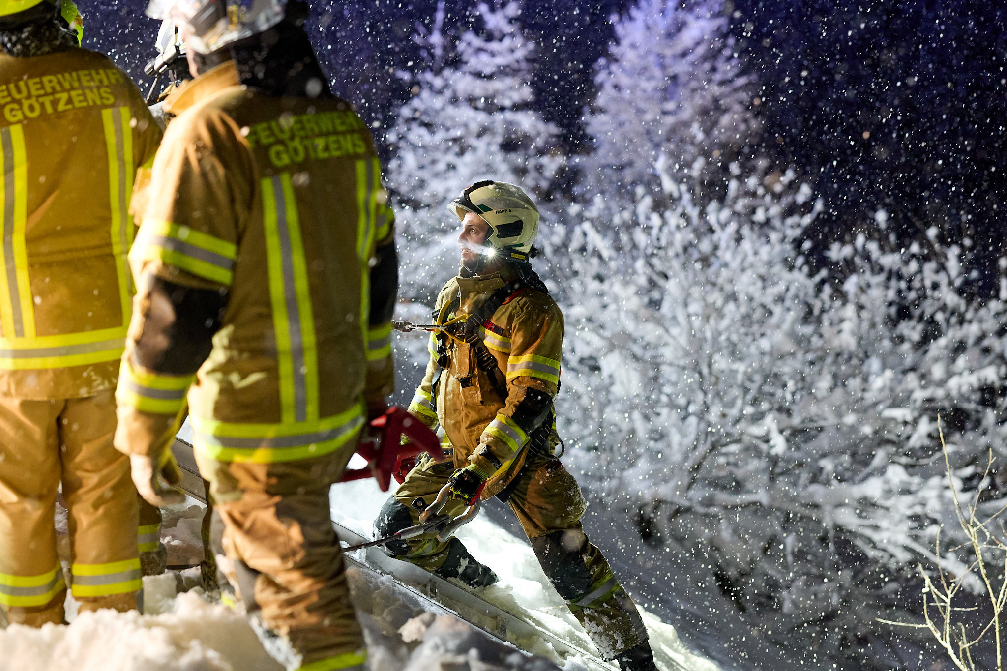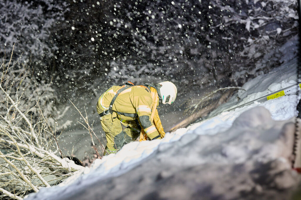 Vor Ort bestätigte sich die Erstmeldung. Auf der schneebedeckten Fahrbahn war ein Lenker mit seinem Fahrzeug über die Böschung ca. 4 Meter abgestürzt. Die Einsatzkräfte verschafften sich mit Anseilschutz und mehreren Steckleiterteilen einen Zugang zum Fahrzeug und sicherten dieses mithilfe der Seilwinde des TLFA Götzens gegen ein weiteres abrutschen. Anschließend halfen die Einsatzkräfte dem Lenker aus dem Fahrzeug und übergaben ihn an den Rettungsdienst. Während die Einsatzkräfte auf den Abschleppdienst warteten kam seitens der Leitstelle Tirol die Information über einen weiteren Einsatz. Ein Küchenbrand in Birgitz verlangte, dass sich die nicht mehr benötigten Fahrzeuge umgehend auf den Weg zum Brandeinsatz machten. Die verbleibenden Kräfte unterstützen den Abschleppdienst bei der Fahrzeugbergung bevor der Einsatz beendet wurde.