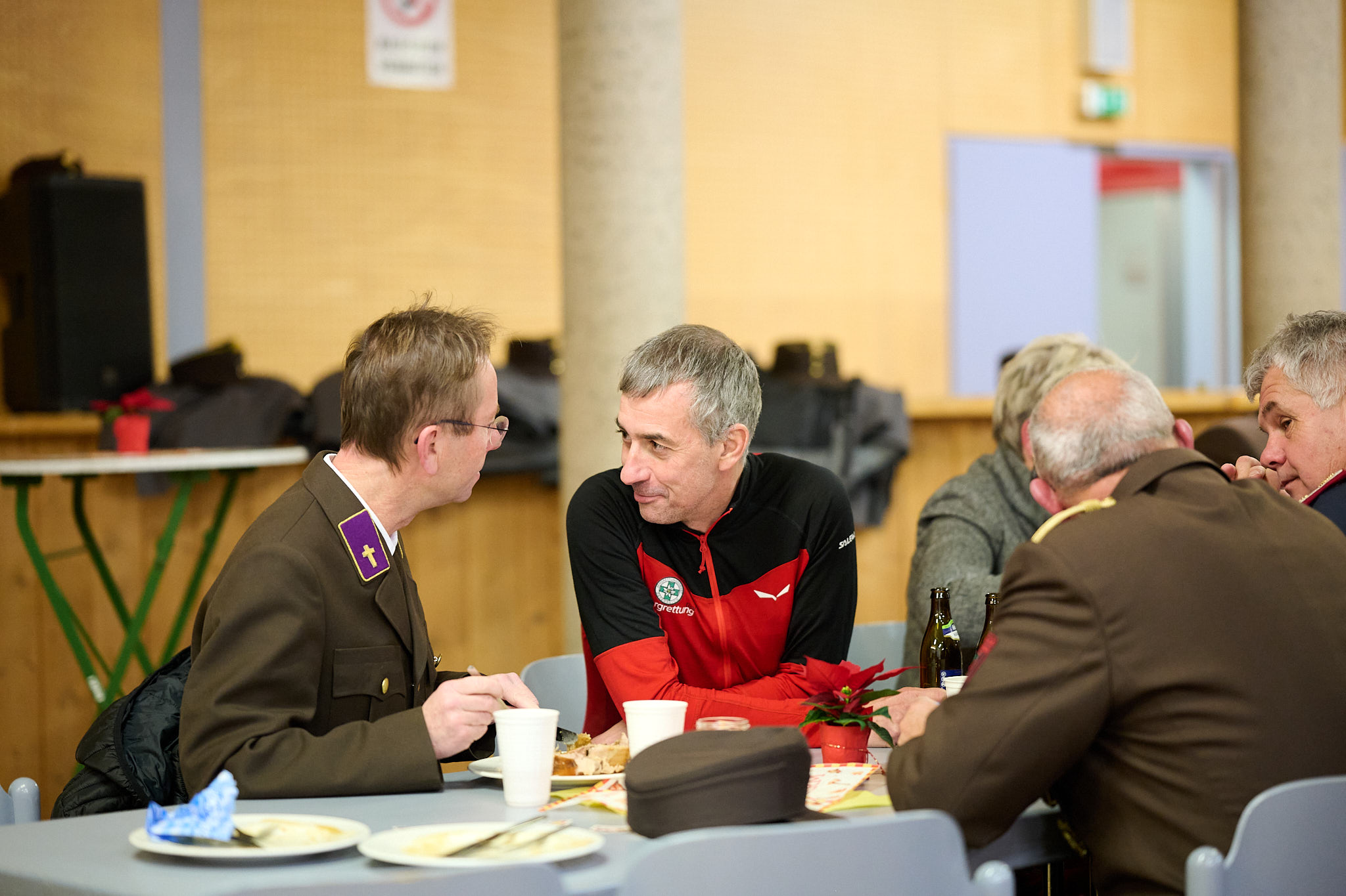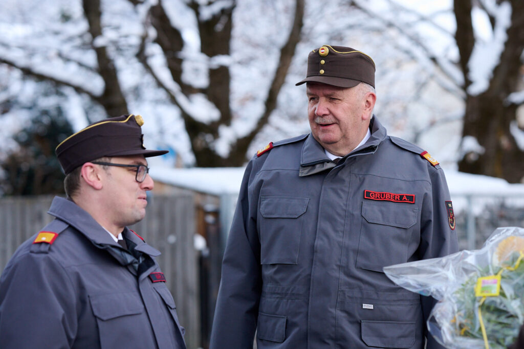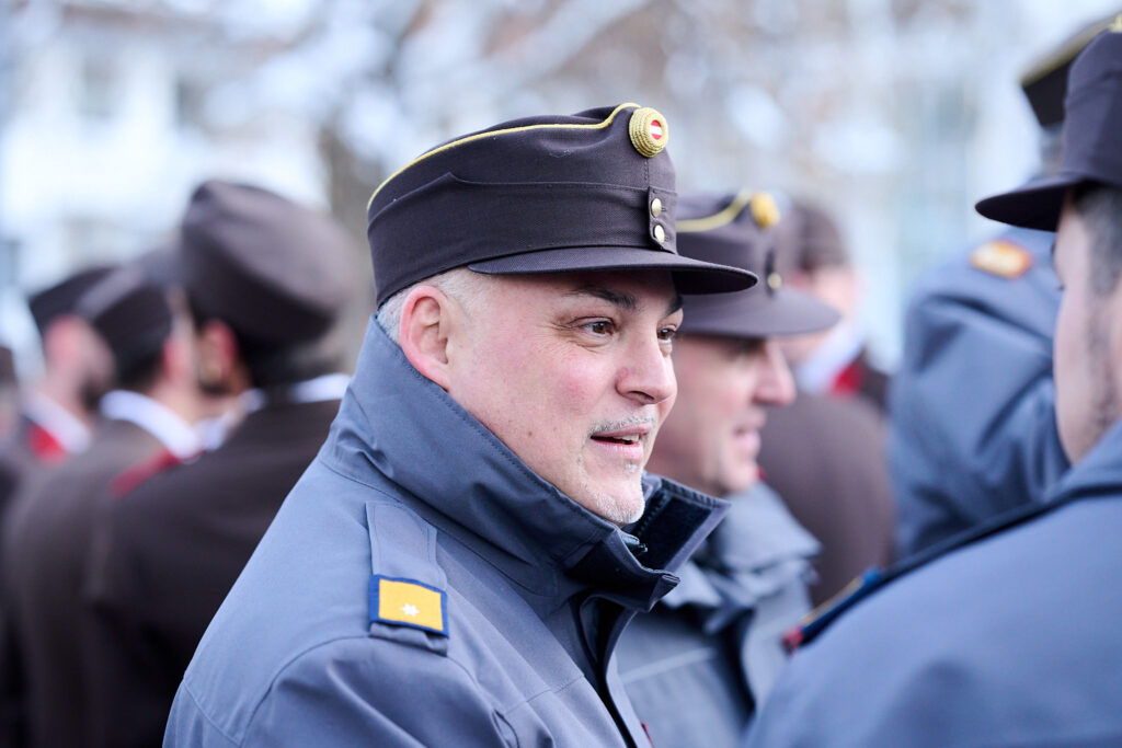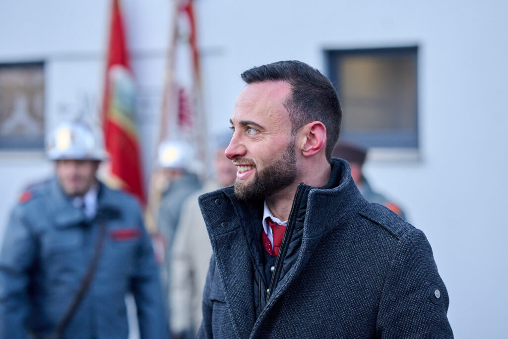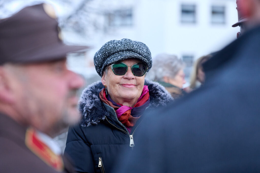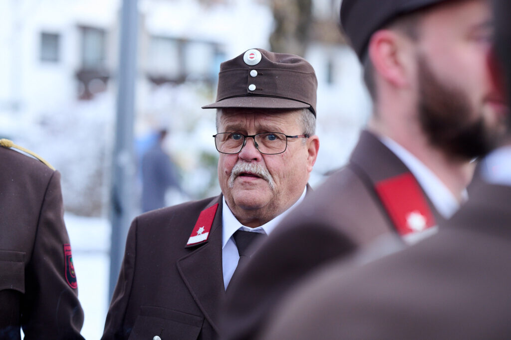 Bürgermeister Thomas Suitner hielt seine Ansprache den winterlichen Bedingungen entsprechend kurz, verband seine Glückwünsche jedoch mit einer humorvollen Anekdote, die den Zuhörern ein Lächeln ins Gesicht zauberte.