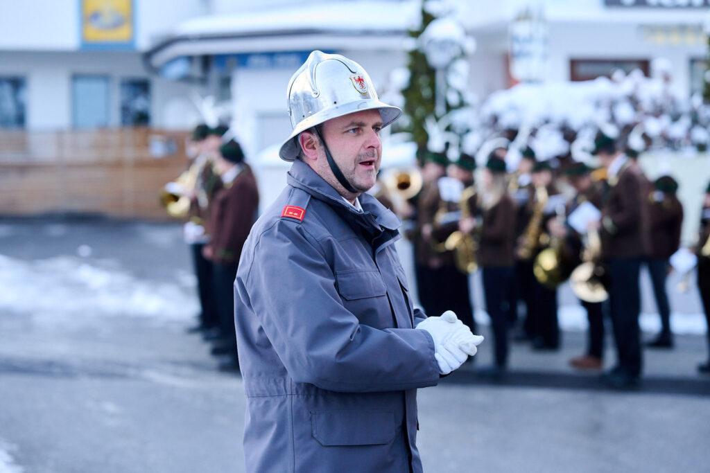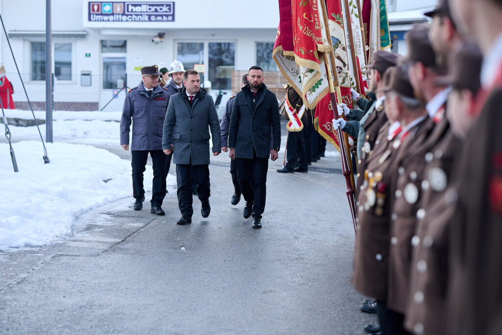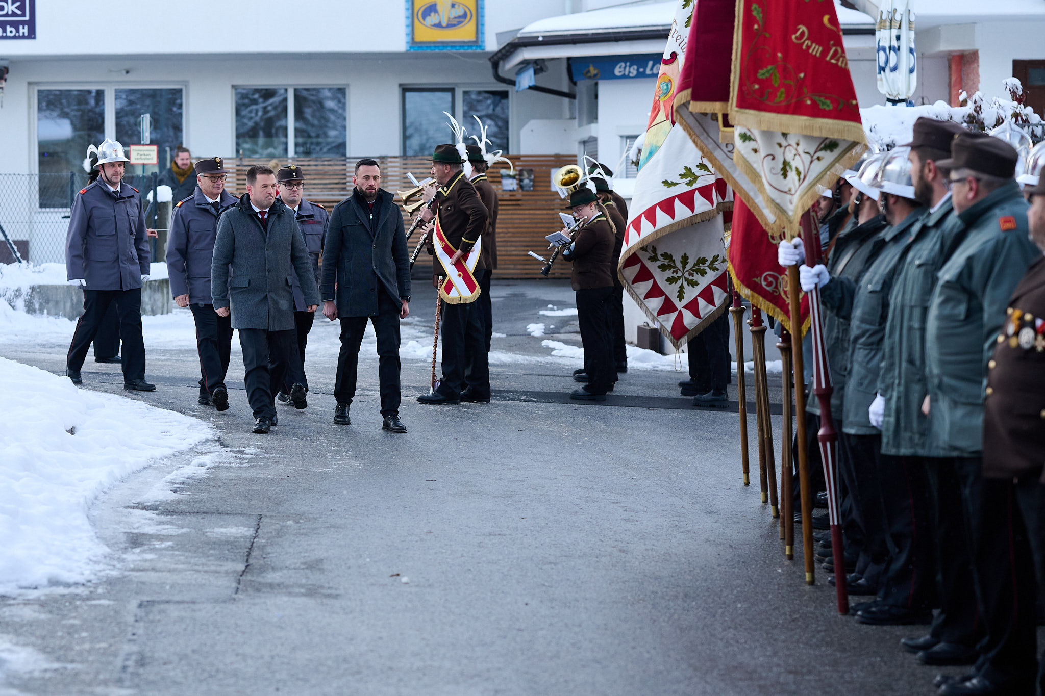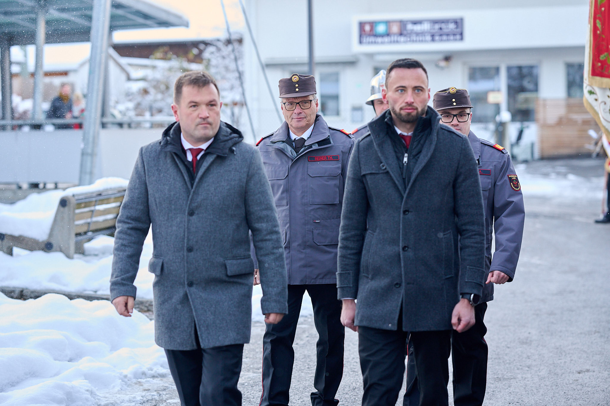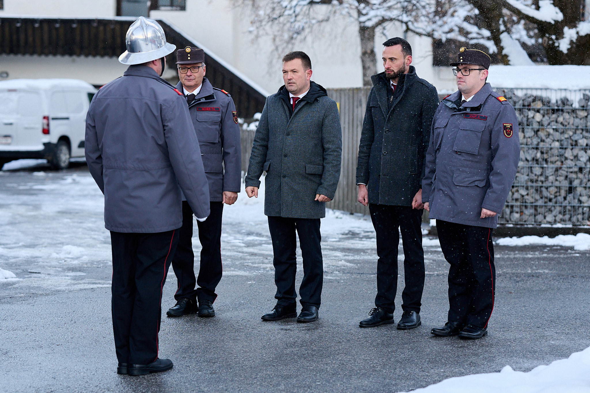 Der stellvertretende Kommandant, Oberbrandinspektor (OBI) Stefan Kirchebner, meldete die angetretene Formation an die anwesenden Ehrengäste. Unter ihnen befanden sich der Abgeordnete zum Tiroler Landtag Ing. Andreas Kirchmair, Bürgermeister Thomas Suitner, Bezirksfeuerwehrkommandant Oberbrandrat (OBR) Thomas Reiner sowie Kommandant Abschnittsbrandinspektor (ABI) Andreas Mair.