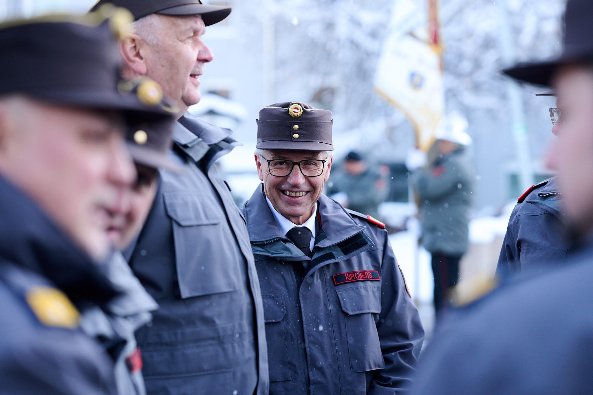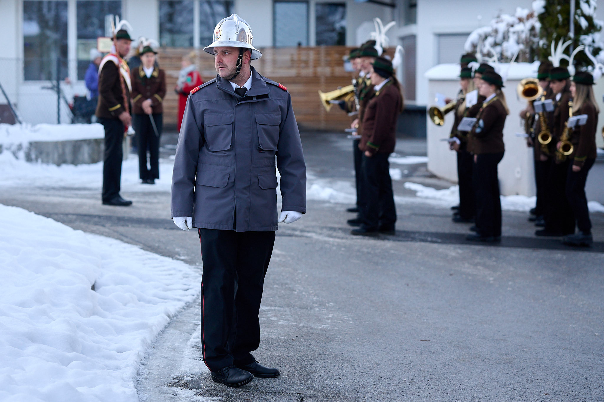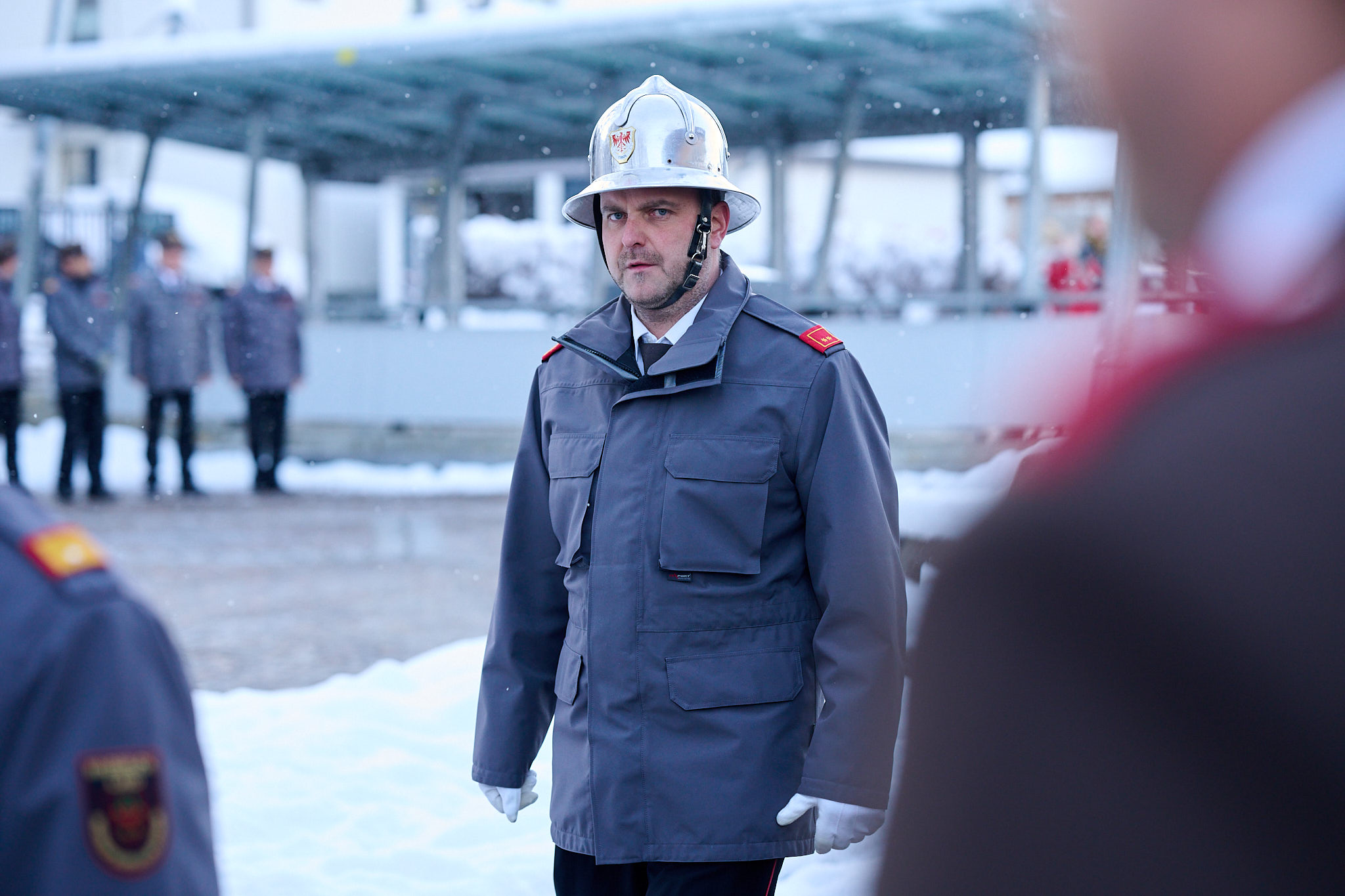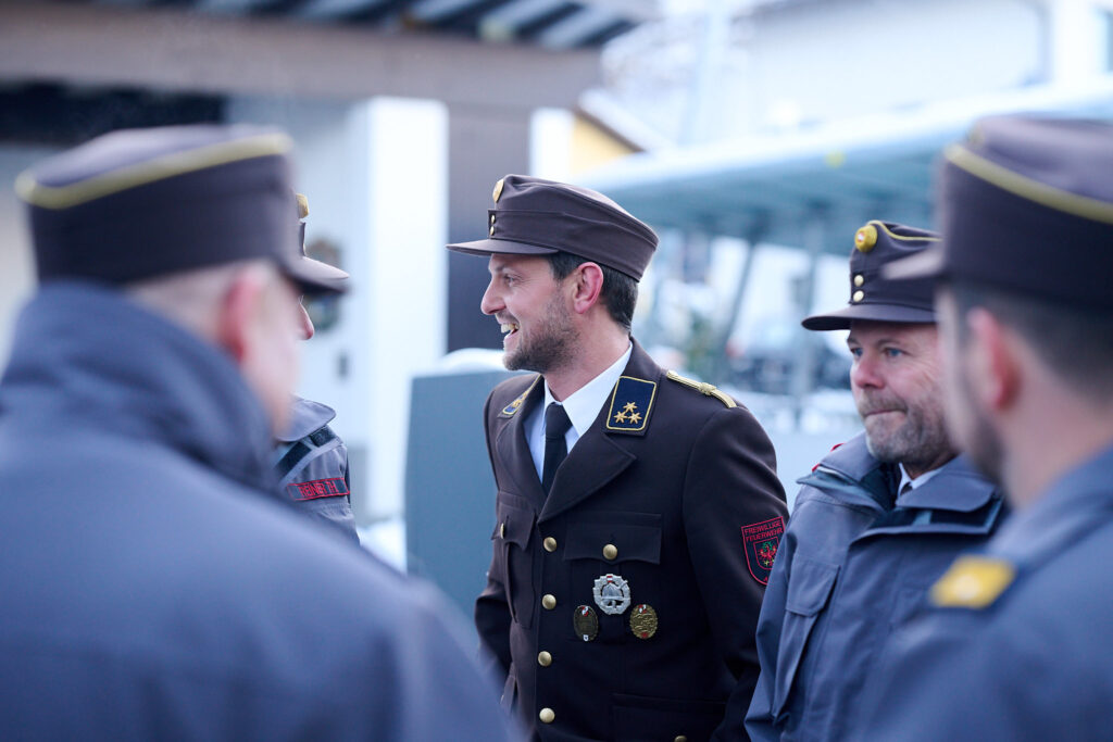Der stellvertretende Kommandant, Oberbrandinspektor (OBI) Stefan Kirchebner, meldete die angetretene Formation an die anwesenden Ehrengäste. Unter ihnen befanden sich der Abgeordnete zum Tiroler Landtag Ing. Andreas Kirchmair, Bürgermeister Thomas Suitner, Bezirksfeuerwehrkommandant Oberbrandrat (OBR) Thomas Reiner sowie Kommandant Abschnittsbrandinspektor (ABI) Andreas Mair.
