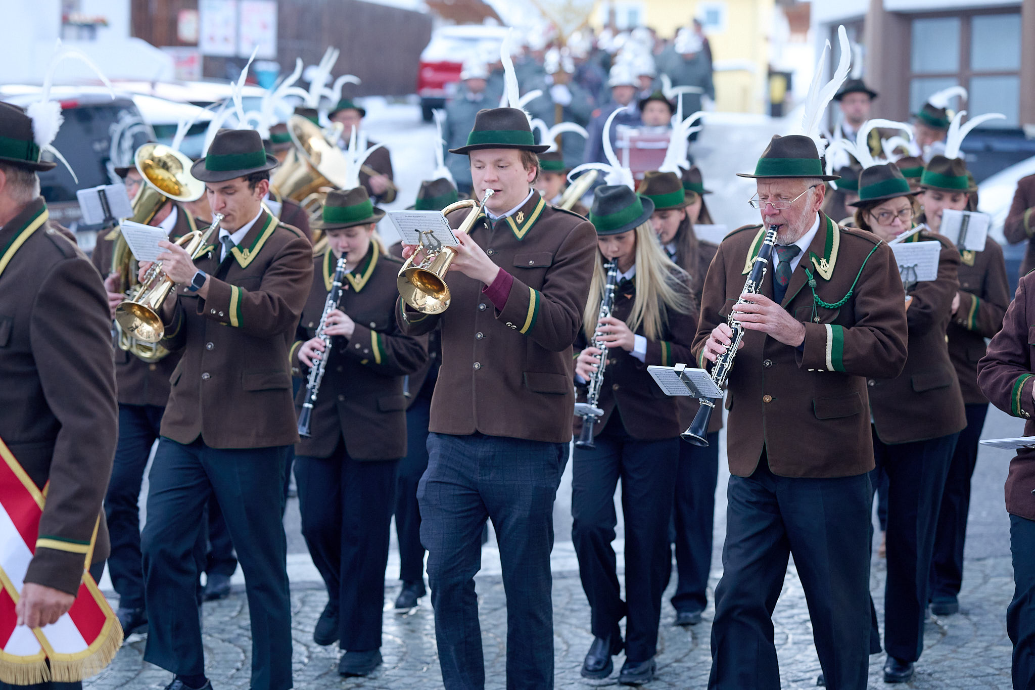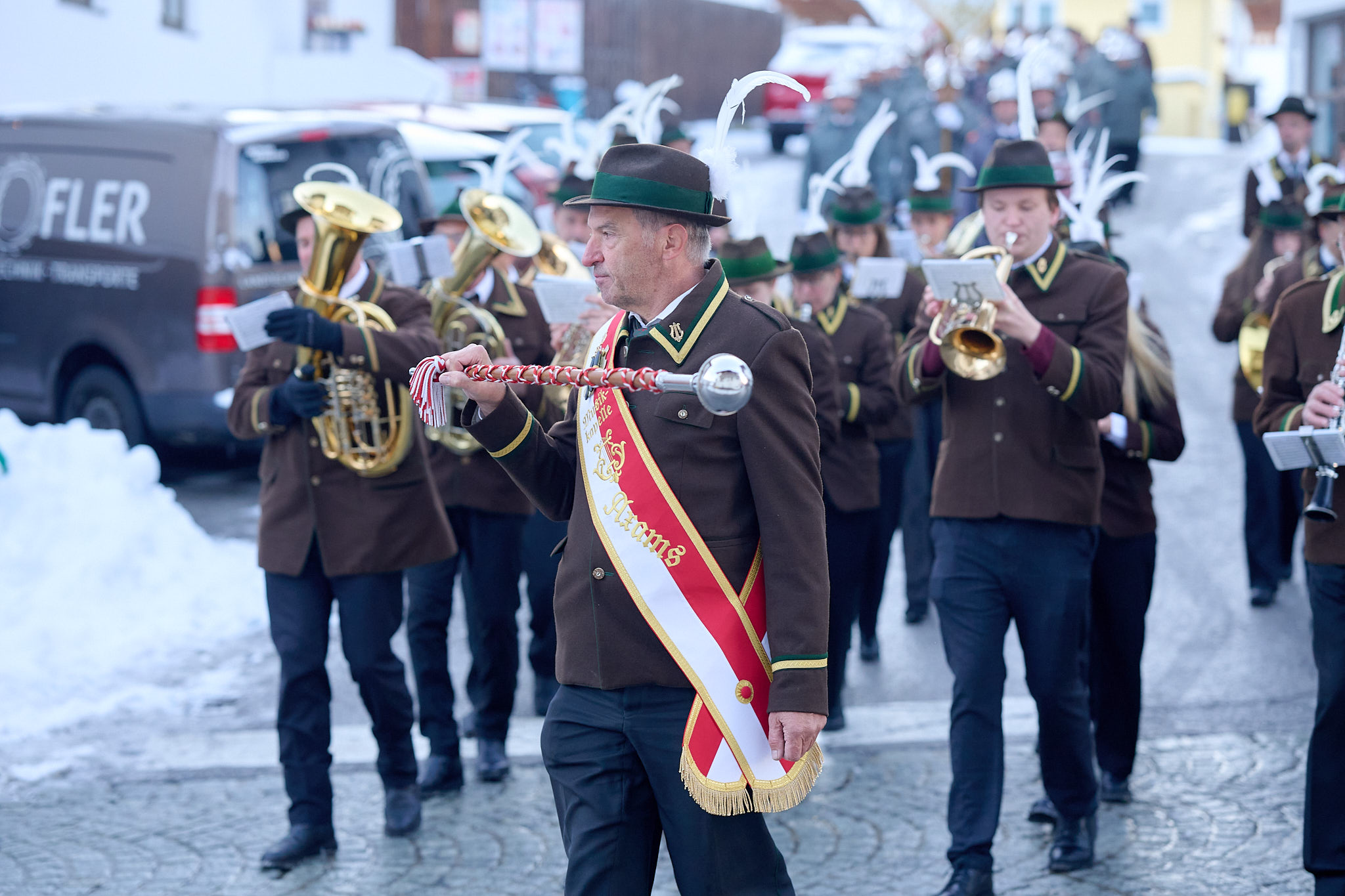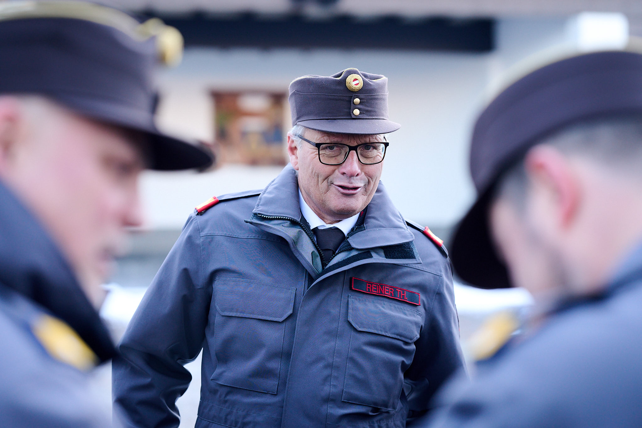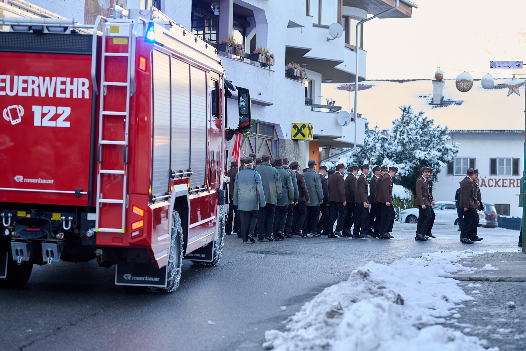 Der stellvertretende Kommandant, Oberbrandinspektor (OBI) Stefan Kirchebner, meldete die angetretene Formation an die anwesenden Ehrengäste. Unter ihnen befanden sich der Abgeordnete zum Tiroler Landtag Ing. Andreas Kirchmair, Bürgermeister Thomas Suitner, Bezirksfeuerwehrkommandant Oberbrandrat (OBR) Thomas Reiner sowie Kommandant Abschnittsbrandinspektor (ABI) Andreas Mair.