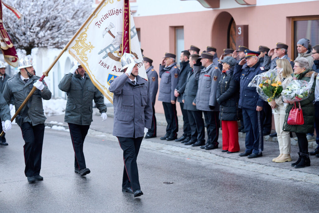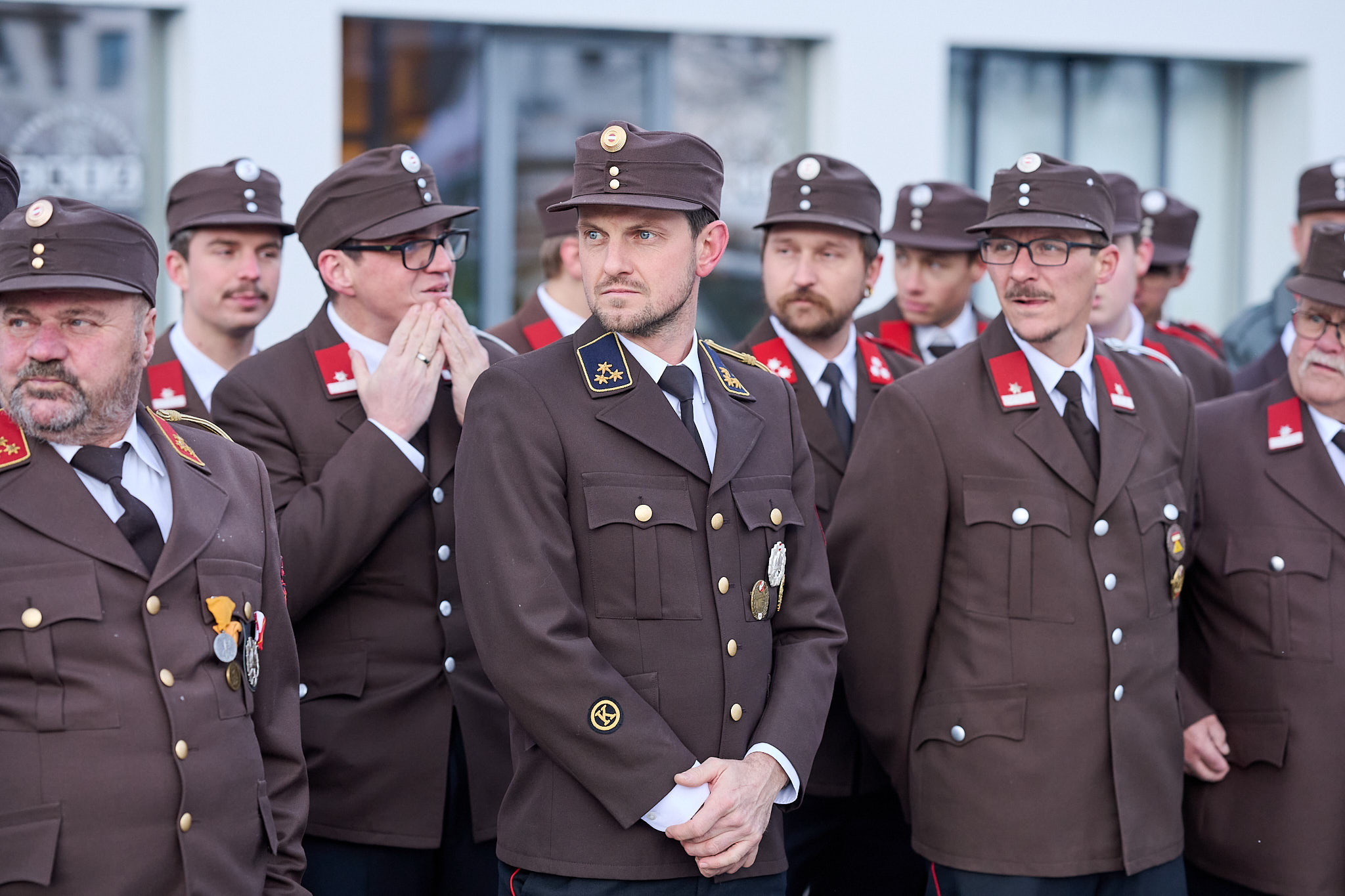 Im Anschluss folgte das feierliche Abschreiten der Front. Die Ehrengäste prüften in Begleitung der Kommandanten und unter den Klängen der Musikkapelle die angetretenen Reihen aus Feuerwehrfrauen und -männern sowie die Fahnenabordnungen. Dieser symbolische Akt unterstrich die Bedeutung des respektvollen Miteinanders zwischen Führung, Mannschaft und den politischen sowie zivilgesellschaftlichen Vertretern der Gemeinde.