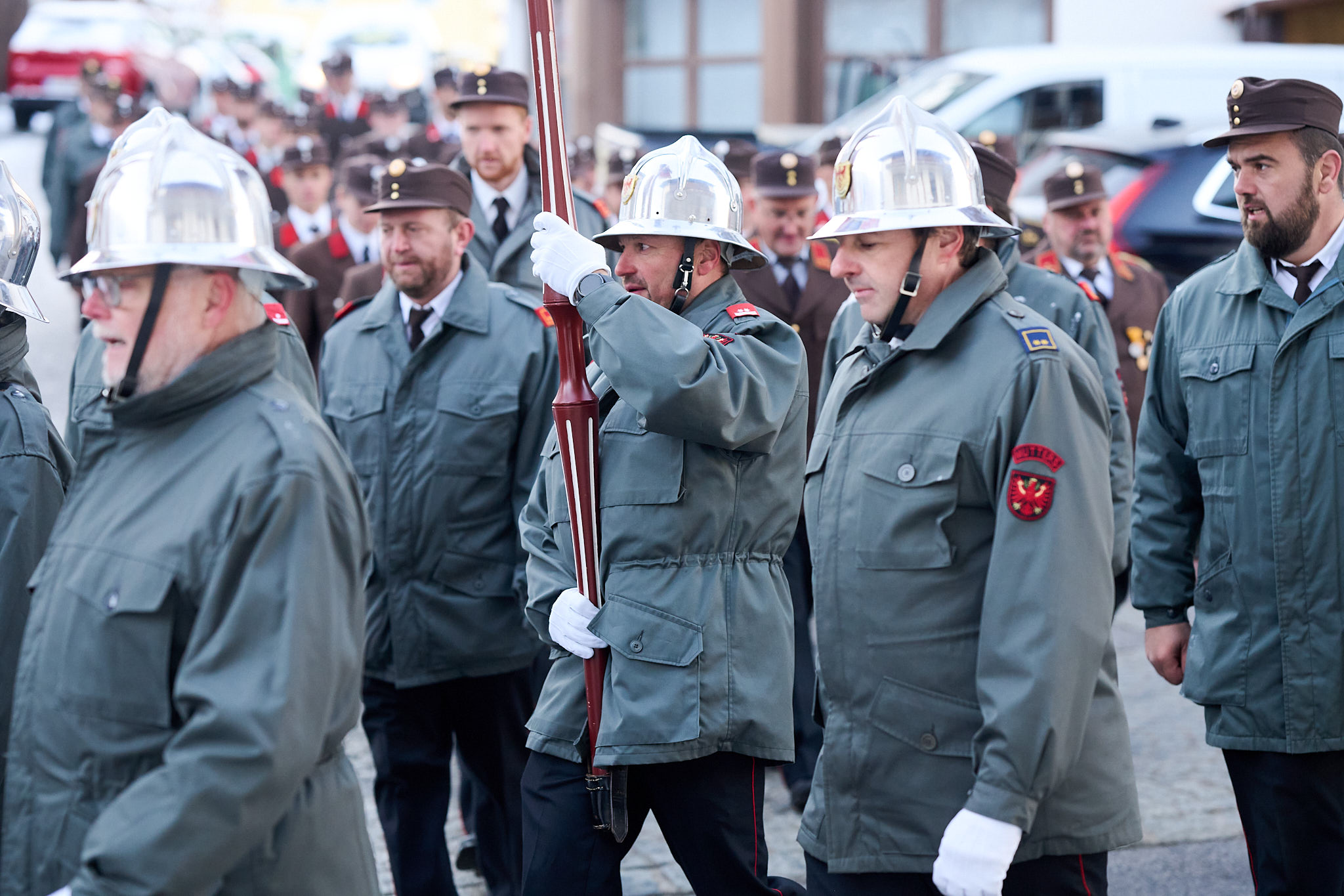 Nach dem Kirchgang übernahm Kommandant ABI Andreas Mair das Wort. In seiner ausführlichen Begrüßung richtete er sich zunächst an eine beeindruckende Reihe geladener Ehrengäste. Neben Feuerwehrkurat Mag. Paul Kneussl, Landtagsabgeordnetem Ing. Andreas Kirchmair und Bürgermeister Thomas Suitner begrüßte er Vizebürgermeister Walter Mair, Vizebürgermeisterin Martha Salchner, Gemeinderat Hansjörg Markt, Gemeinderat Christoph Markt, die Ehrenmitglieder und Altbürgermeister Josef Tauber, Rudolf Nagl und Christian Abenthung, Landesfeuerwehrinspektor außer Dienst Ing. Alfons Gruber, Bezirksfeuerwehrkommandant OBR Thomas Reiner, seinen Stellvertreter BR Martin Hellberg, Bezirksschriftführer BV Thomas Tanzer, Bezirkskassier BV Senat Huter, Abschnittsfeuerwehrkommandant ABI Herbert Strickner sowie zahlreiche Funktionäre außer Dienst, darunter OBR Reinhard Kircher, BR Lorenz Neuner und ABI Walter Stockner. Ebenso wurden die Patinnen Gerti Tauber, Maria Schweighofer, Elisabeth Zorn, Claudia Klotz, Manuela Kircher, Sabine Abenthung sowie die neue Patin des Tanklöschfahrzeugs Petra Kirchebner willkommen geheißen.