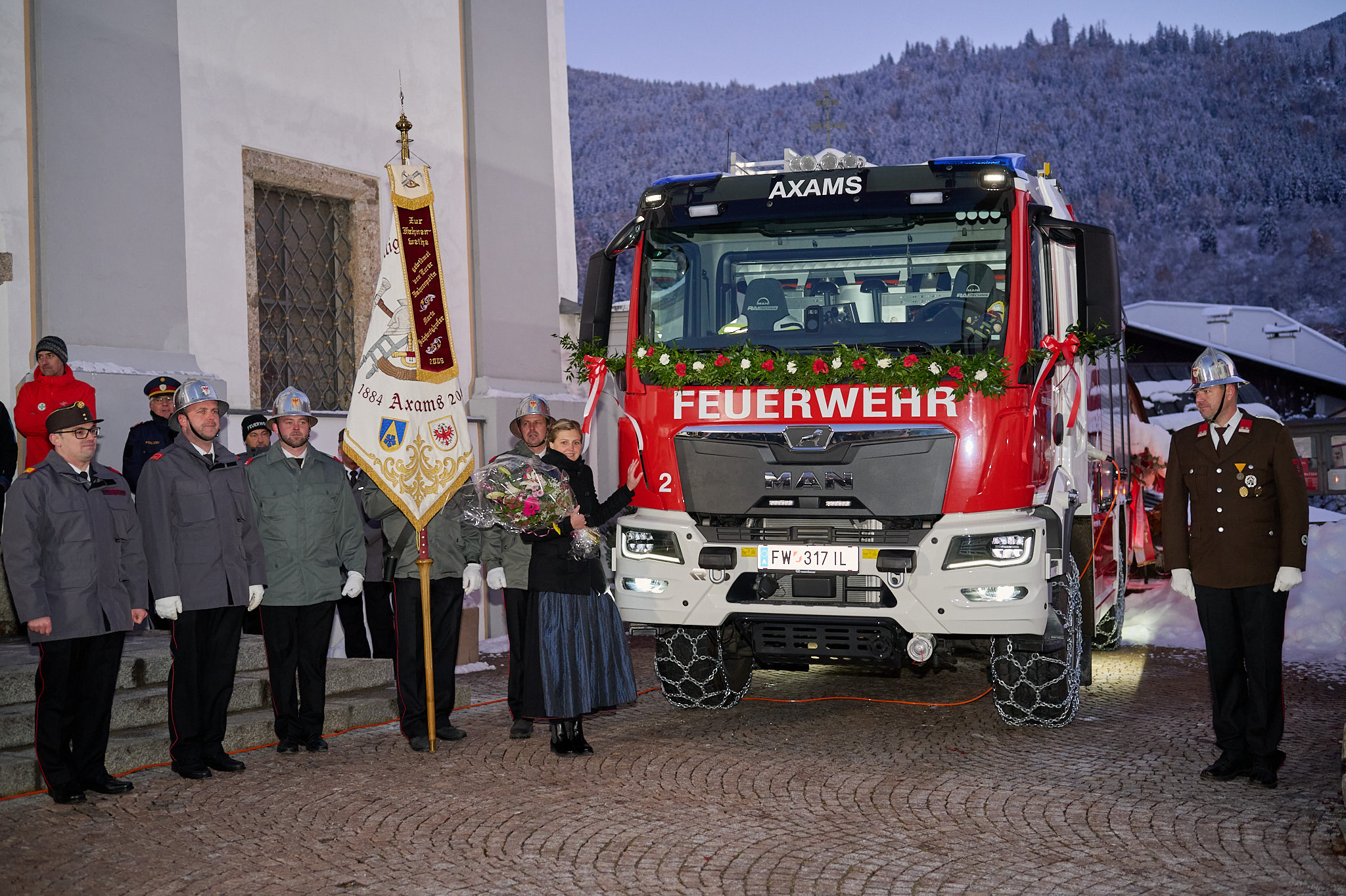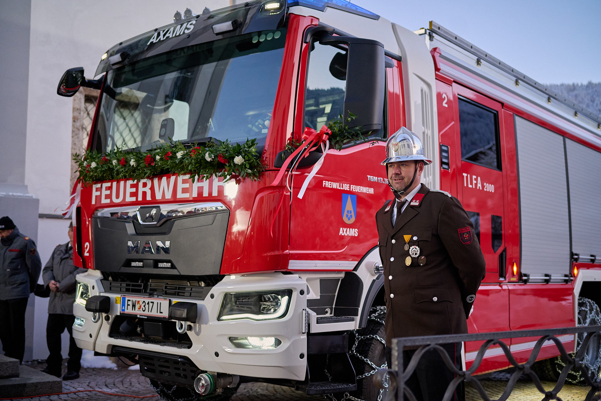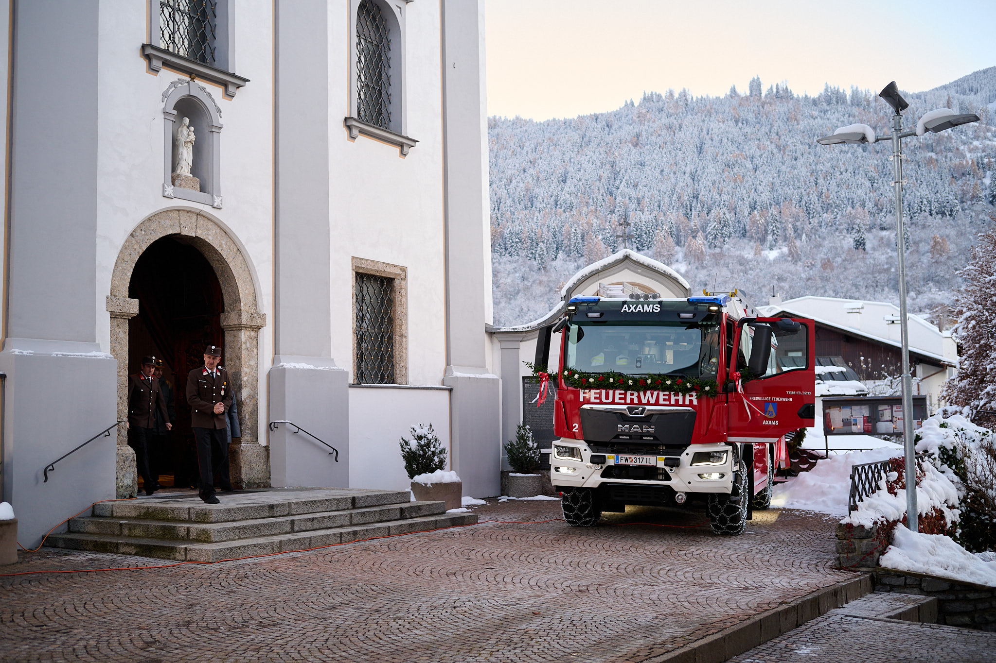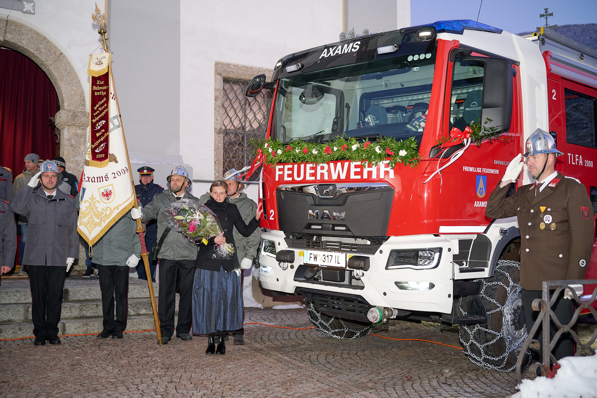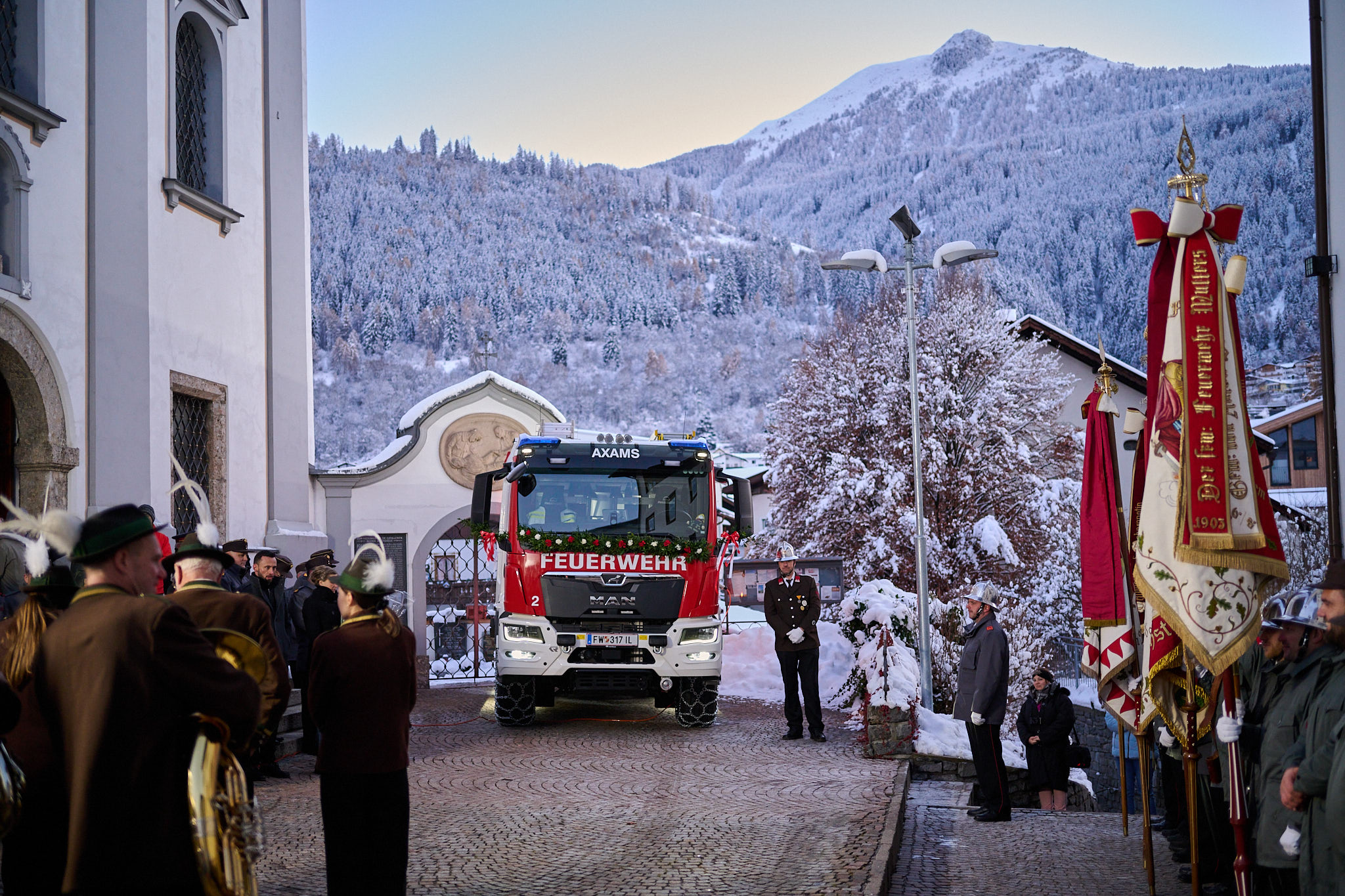 Am Samstag, den 22. 11.2025, versammelte sich die Freiwillige Feuerwehr Axams zur feierlichen Segnung des neuen Tanklöschfahrzeuges 2000 samt anschließendem Kameradschaftsabend. Trotz winterlicher Witterungsverhältnisse mit eisigen Temperaturen fanden sich zahlreiche Feuerwehrmitglieder, Ehrengäste, Patinnen, Vertreter befreundeter Einsatzorganisationen sowie viele interessierte Bürgerinnen und Bürger ein, um diesem bedeutenden Moment gemeinsam beizuwohnen.