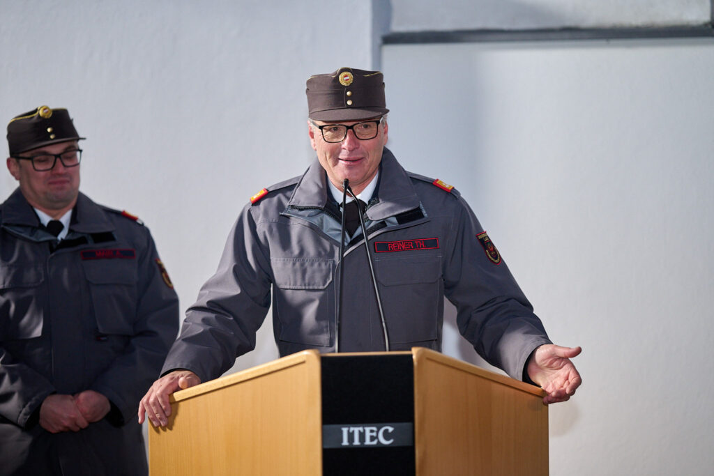 In der Folge schilderte Mair ausführlich die Entstehungsgeschichte des neuen Tanklöschfahrzeuges. Von den ersten Gesprächen über die Planung, die Budgetierung und die technischen Anforderungen bis hin zur Ausschreibung und schließlich zur Umsetzung durch die Firma Rosenbauer führte er die Zuhörer durch einen Prozess, der durch zahlreiche Meilensteine, Herausforderungen und intensive Abstimmungen geprägt war. Er betonte, wie wichtig es sei, die Einsatzfahrzeuge stets auf modernstem Stand zu halten, um im Ernstfall rasch, effizient und sicher handeln zu können. Besonders hob er hervor, dass das neue TLF 2000 nicht nur eine Investition in Material, sondern vor allem in die Sicherheit der Bevölkerung und der Mannschaft darstellt.