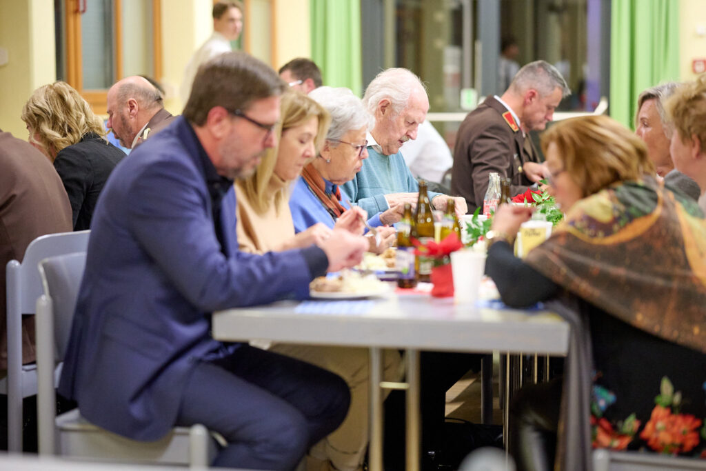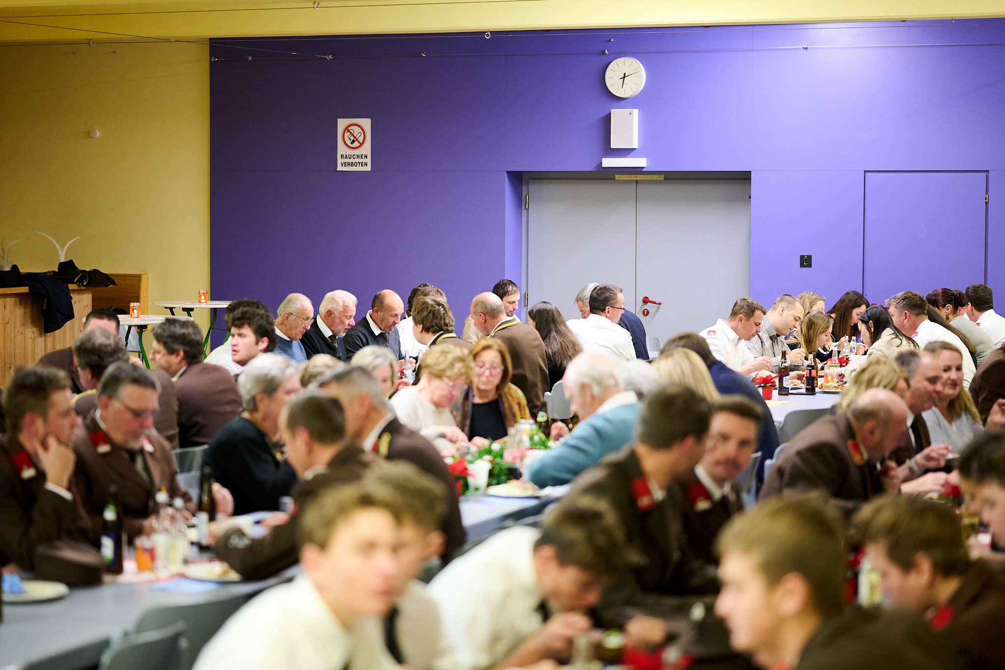 Nach dem offiziellen Abschluss des Festaktes formierte sich der Zug erneut und marschierte zurück zum Pavillon, wo die Formationen abtraten. Im Anschluss begaben sich Feuerwehrmitglieder, Ehrengäste und Gäste in den Lindensaal, wo der Kameradschaftsabend stattfand. Dort erwartete sie ein hervorragend zubereitetes Spanferkel der Metzgerei Brindlinger sowie ein reichhaltiges Angebot an Getränken. Der Abend bot Gelegenheit zu Gesprächen, zum Austausch von Erinnerungen und zur Pflege der Kameradschaft, die das Rückgrat jeder Freiwilligen Feuerwehr bildet. Bis in die späten Stunden wurde gelacht, gefeiert und über das neue Kapitel in der Geschichte der Feuerwehr Axams gesprochen.