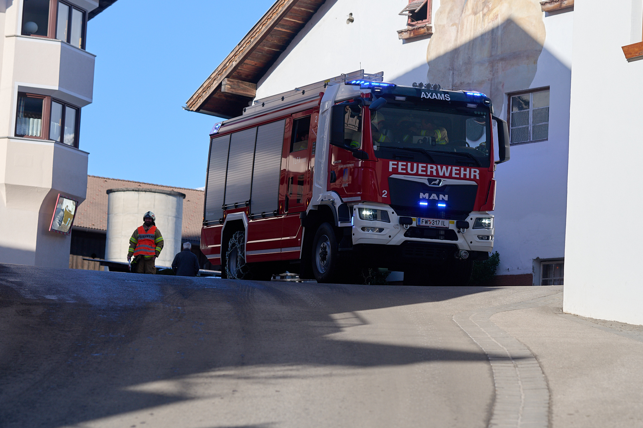 FW Axams mit KDO, TLFA 1, TLFA 2, DLK und 30 Mann
