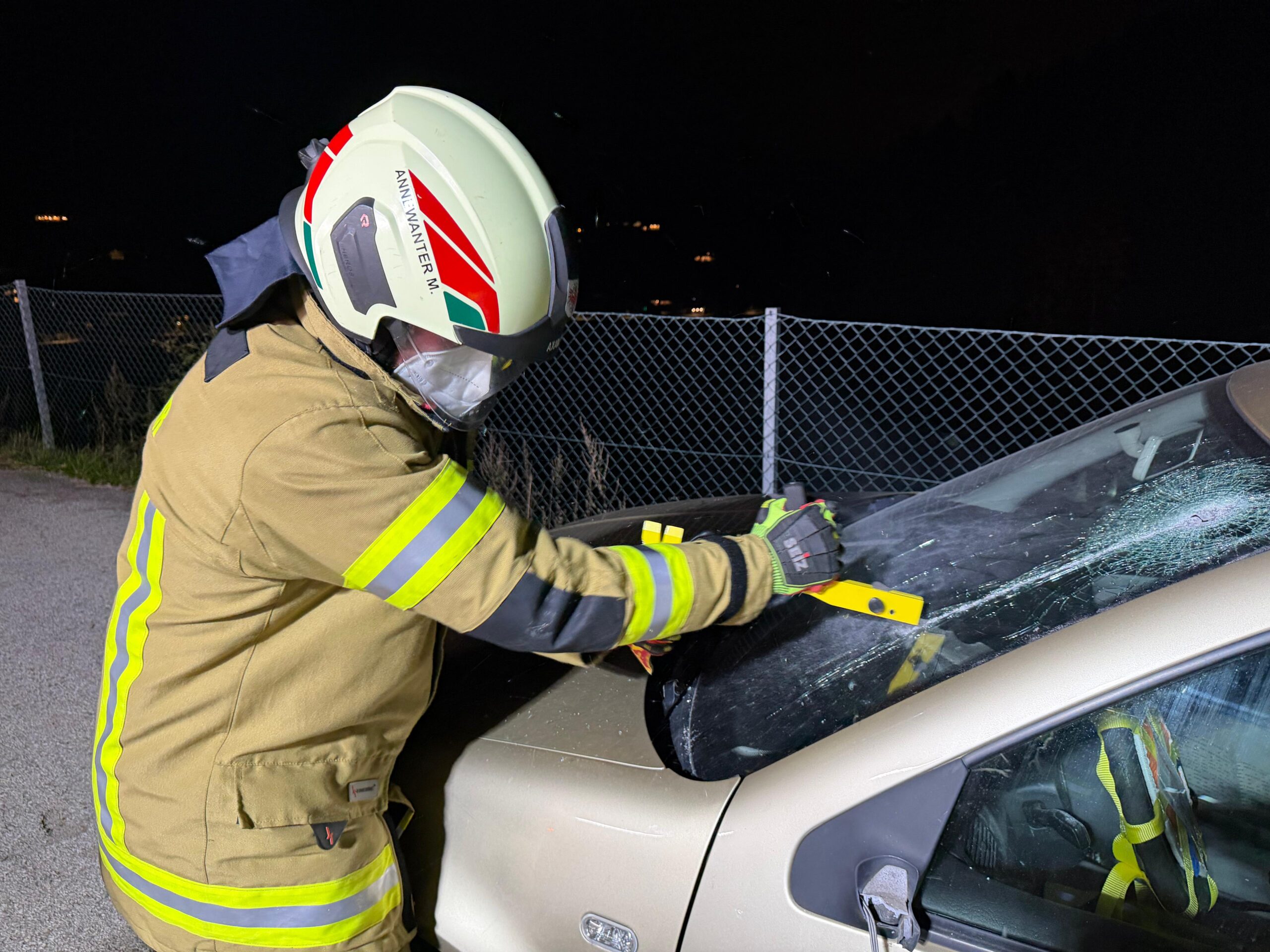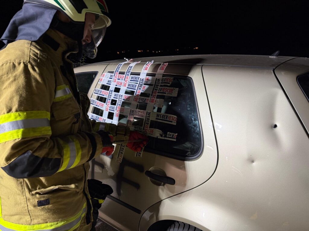 Dabei wurde das richtige Handling des Glasmanagement-Set, dies sind technische Gerätschaften zum Entfernen von Autoscheiben, und die Handhabung der Stab-Fast, dies sind Abstützungen zum stabilisieren von Fahrzeugen, geübt.