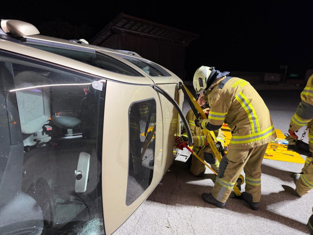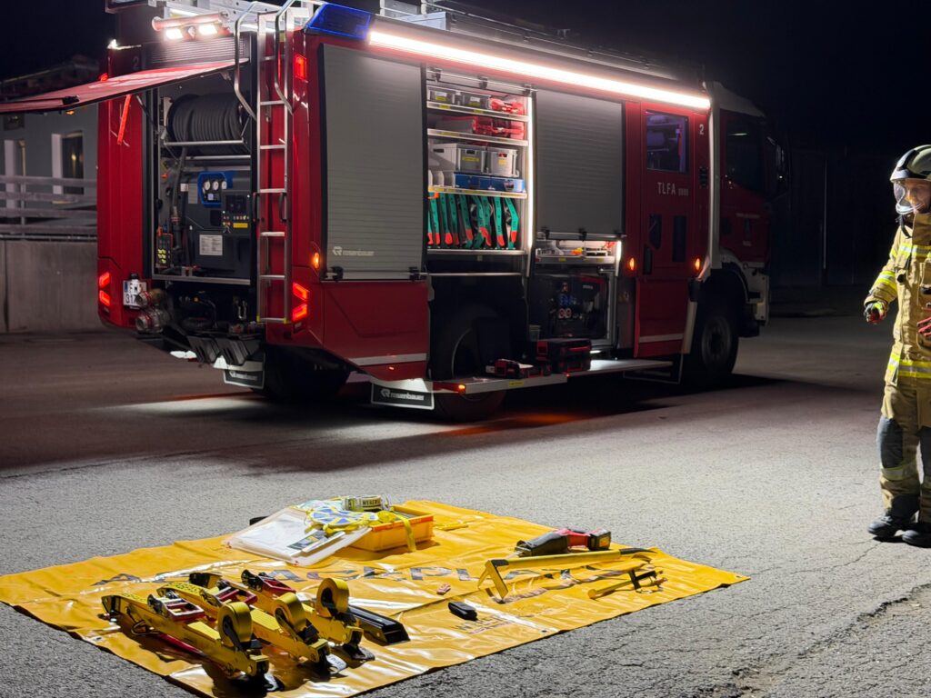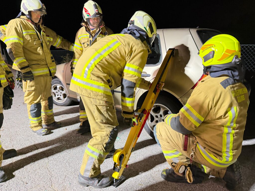 Am Mittwochabend trafen sich die Mitglieder des Feuerwehrausschusses um das erste Mal gemeinsam mit dem neuen technischen Equipment, welches mit der Neubeschaffung des Tanklöschfahrzeug 2 bei der Feuerwehr Axams Einzug gehalten hat, zu üben.