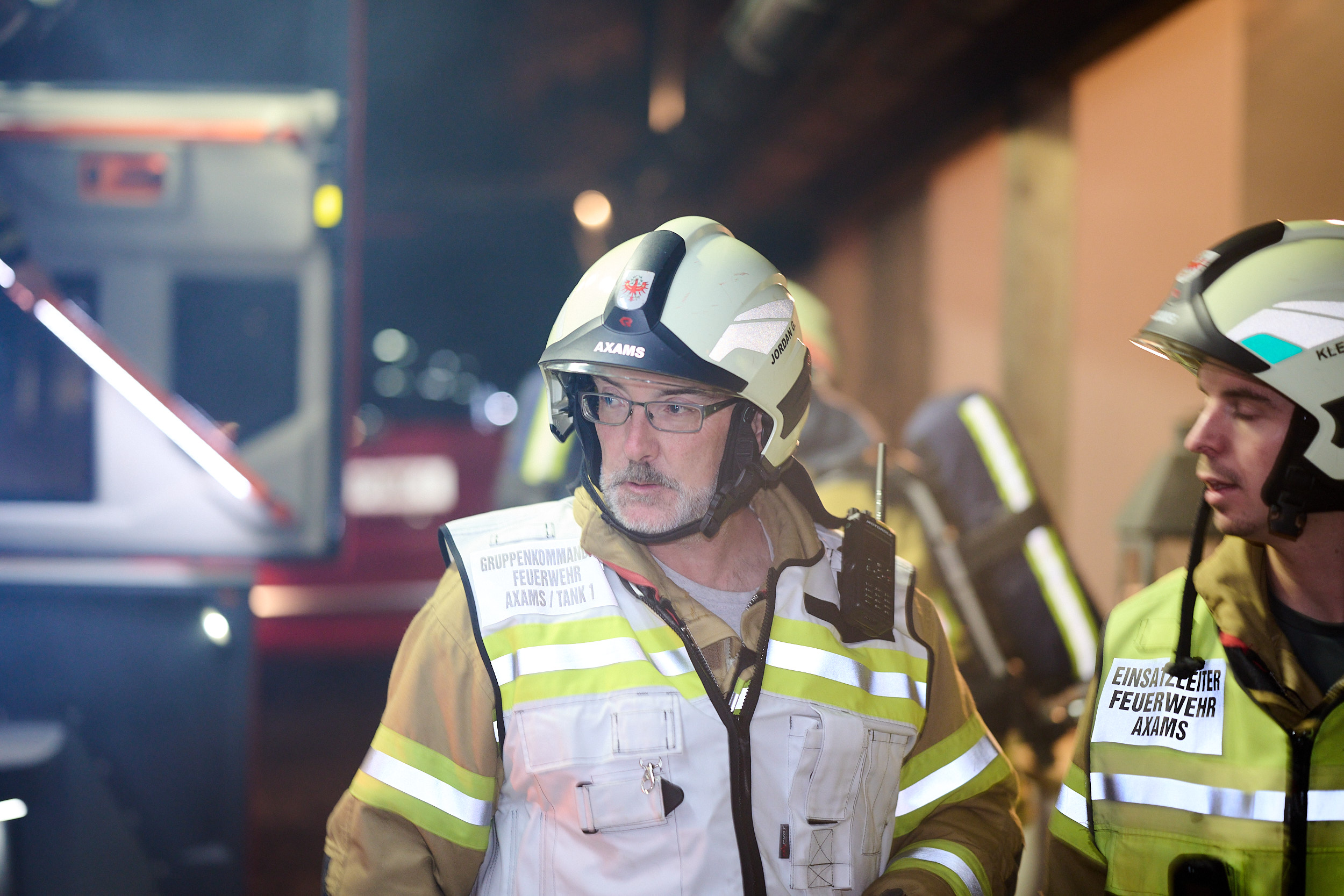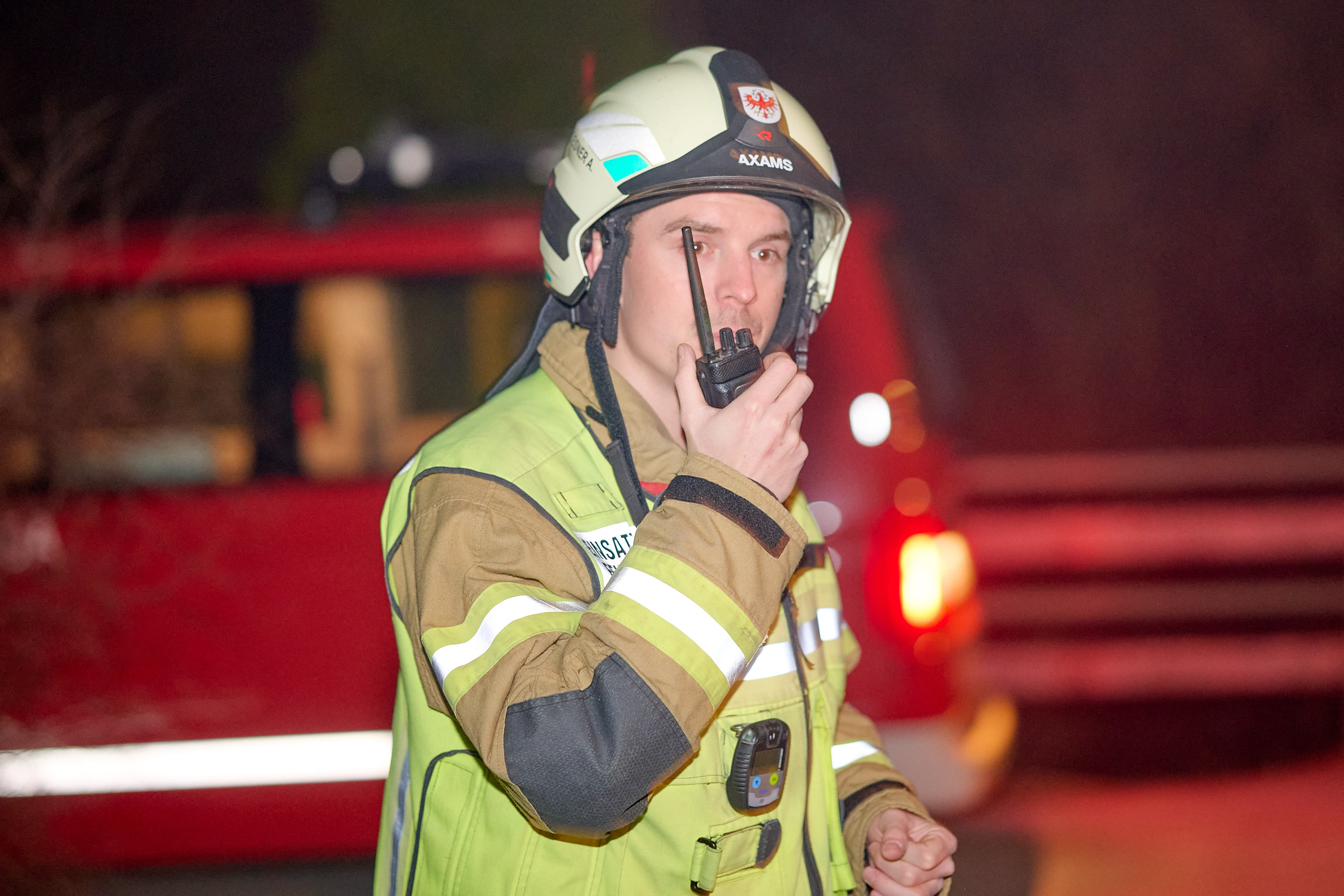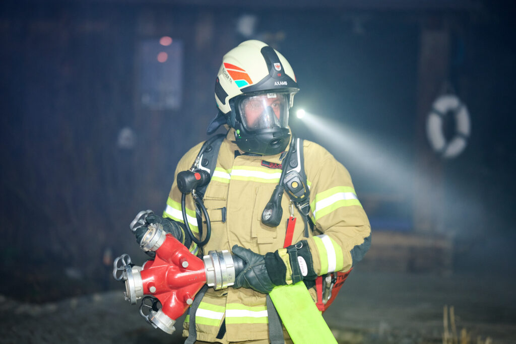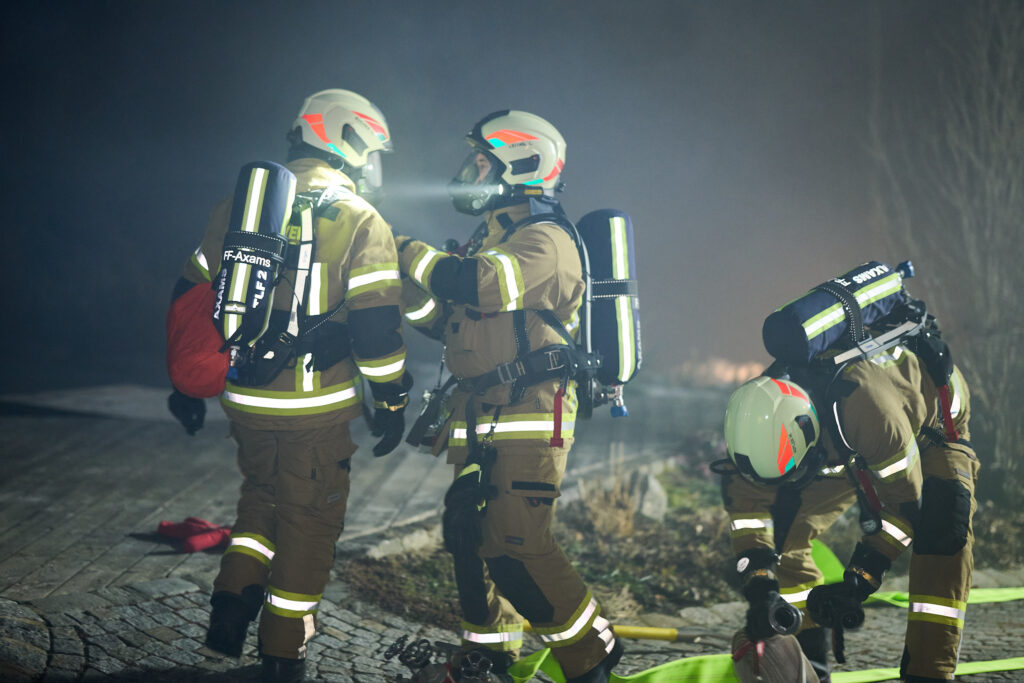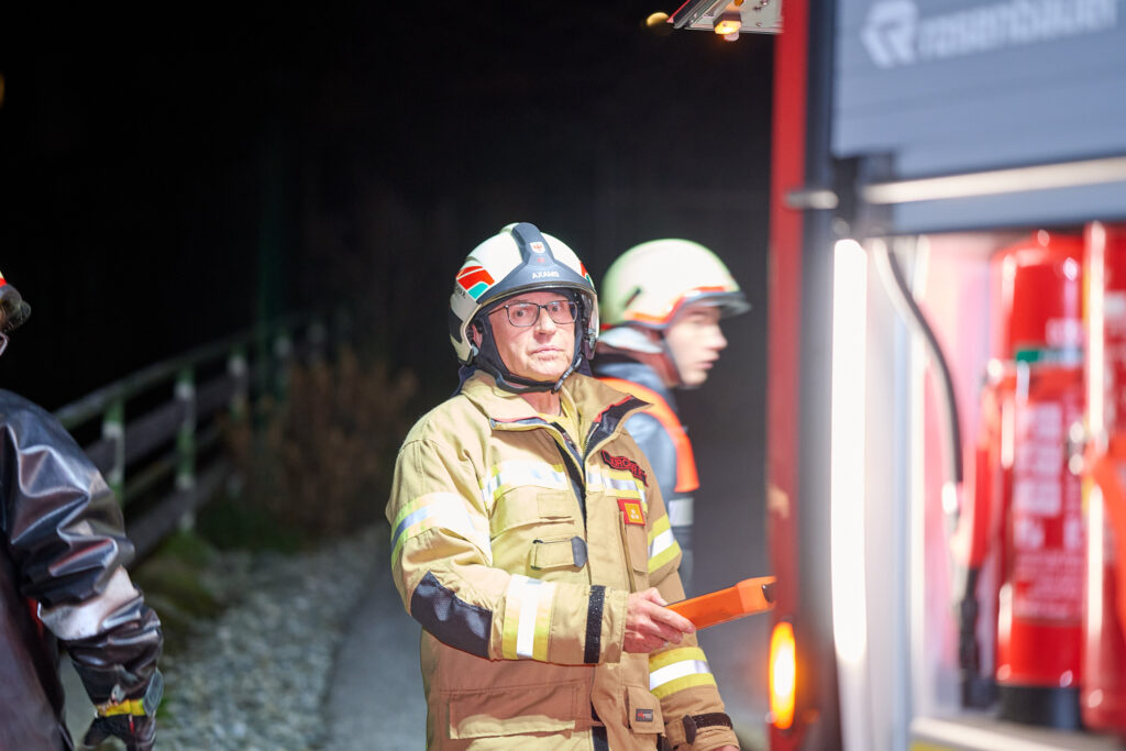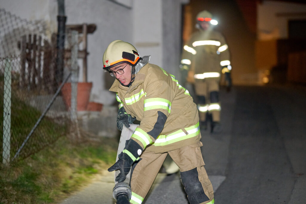 Am Abend des 5. März 2026 versammelte sich die Feuerwehr Axams zu einer großangelegten Zugsübung, um das koordinierte Vorgehen bei einem kombinierten Brand- und Rettungsszenario zu festigen. Unter der Leitung von Einsatzleiter LM Andreas Kleisner sowie der Aufsicht von Kommandant-Stellvertreter OBI Stefan Kirchebner rückten die Einsatzkräfte mit dem Kommandofahrzeug, beiden Tanklöschfahrzeugen sowie dem Kleinlöschfahrzeug zum Übungsobjekt aus. Die von OBM Matthias Kirchmair und OLM Heribert Nagl detailgetreu vorbereitete Übungslage forderte die Mannschaft bereits bei der Ankunft, da ein simulierter Garagenbrand nicht nur eine Person im Gebäude gefährdete, sondern bereits auf die angrenzende Böschung überzugreifen drohte.