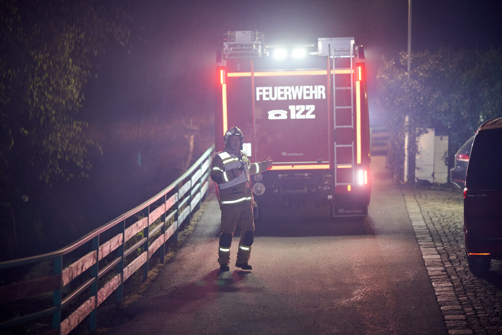 Das KLF übernahm währenddessen eine zentrale Rolle in der Löschwasserversorgung. Die Besatzung verlegte eine Zubringerleitung vom nächstgelegenen Hydranten zum TLFA1 und unterstützte zudem den Aufbau der Löschleitungen für das TLFA2, wodurch ein kontinuierlicher Wasserfluss für die umfassende Brandbekämpfung sichergestellt war.