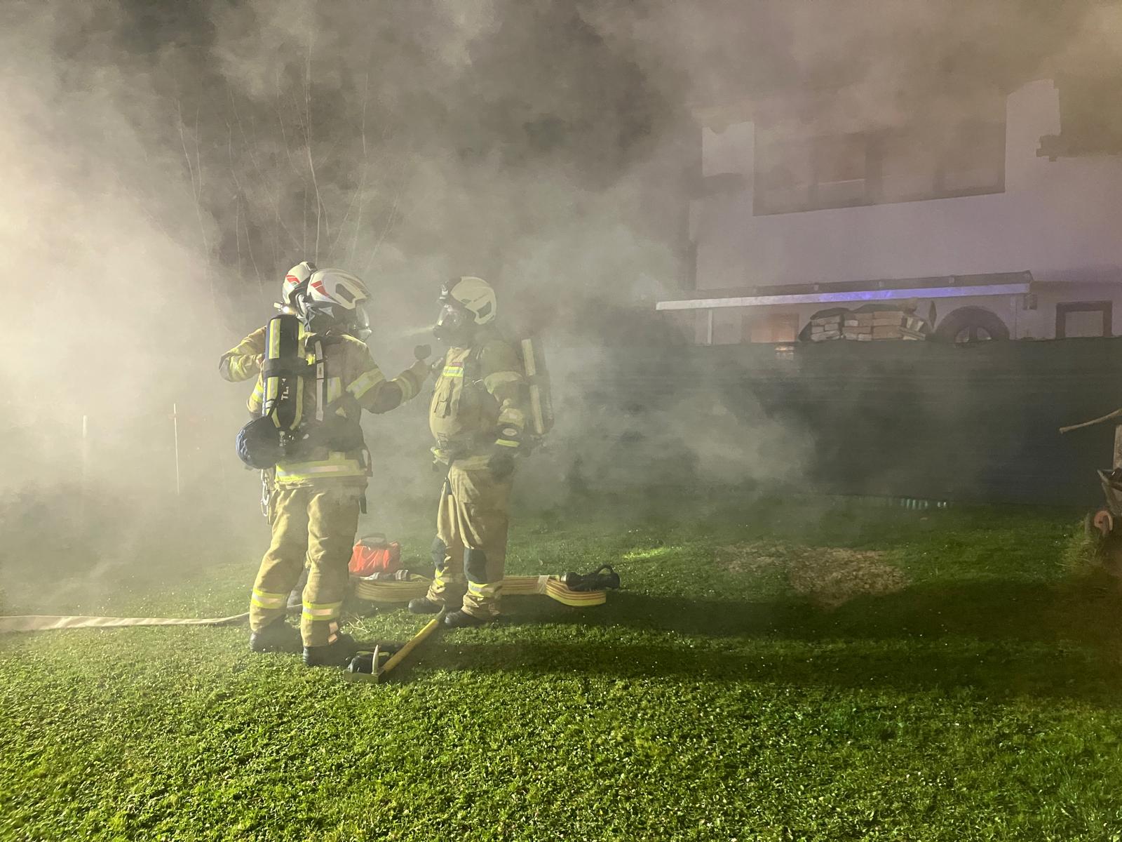 Während die Wasserversorgung über das vorhandene Hydrantennetz sichergestellt wurde, begaben sich die Atemschutztrupps vom TLFA 1 und TLFA 2 zur Brandbekämpfung und Menschenrettung in das Gebäude. Binnen kurzer Zeit wurden zwei vermisste Personen gefunden und ins Freie verbracht.