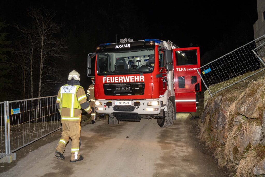 Als Übungsannahme fungierte ein gemeldeter Fahrzeugbrand mit Ausbreitungsgefahr auf den dahinter liegenden Wald. Die Besatzung des Tanklöschfahrzeuges errichtete einen umfänglichen Löschangriff mit mehreren C-Strahlrohren. Die notwendige Wasserversorgung wurde durch die Besatzung des Kleinlöschfahrzeuges vom Axamer Bach aus sichergestellt werden.